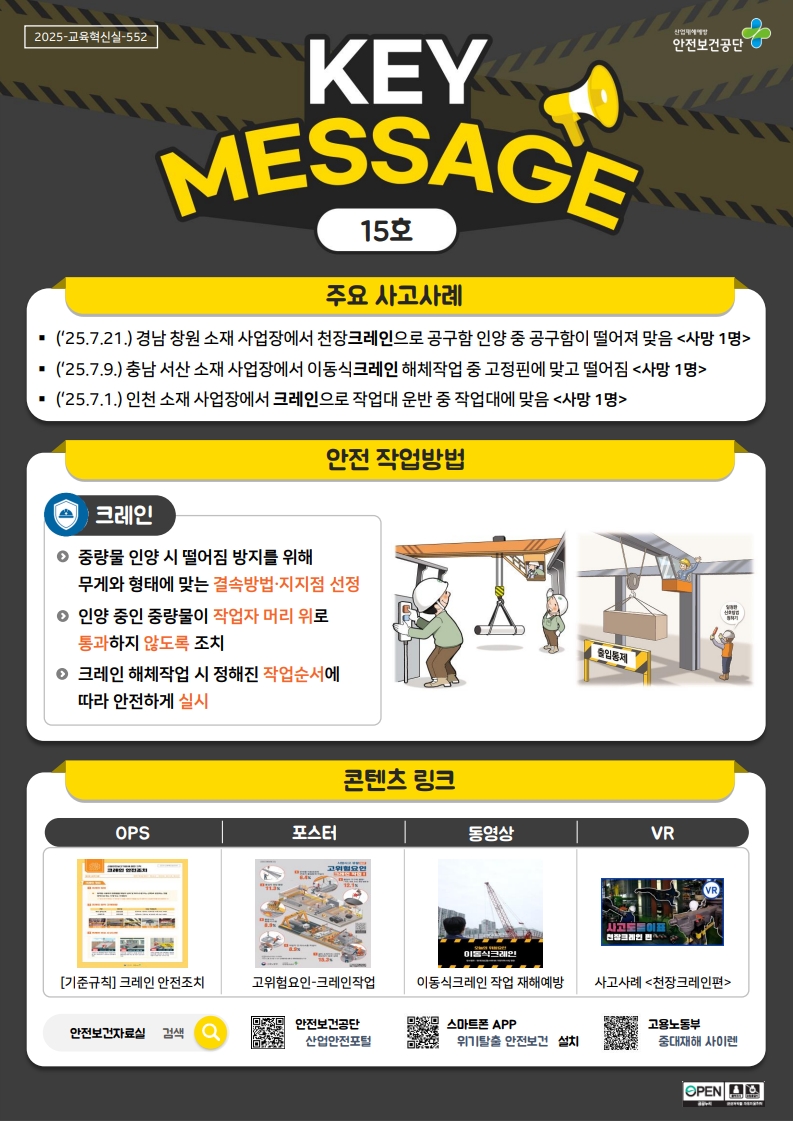 [안전보건공단] 키메세지(15호_크레인)