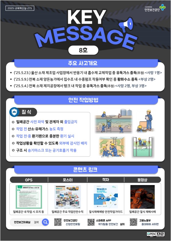 안전보건공단 산업안전포털 안전보건자료실에 [키메세지(8호_질식)] 자료가 게시되었습니다.