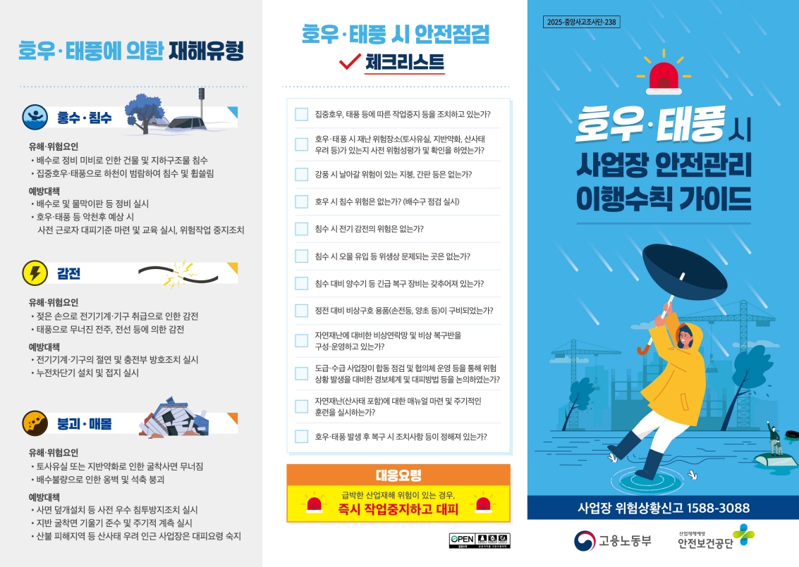 [안전보건공단] 태풍·호우 시 사업장 안전관리 이행수칙 가이드